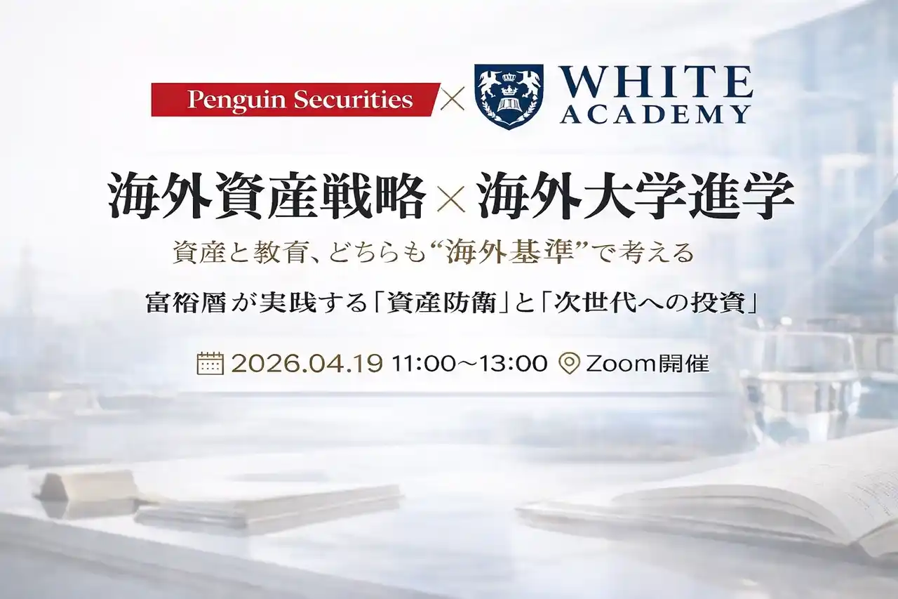 国内外の名門大学入試や一流企業就職を支援するホワイトアカデミー(Avalon Consulting株式会社、東京都新宿区、代表:竹内健登)は、シンガポールの証券会社、Penguin Securities Pte. Ltd.の日本支社セールスマネージャーである金子雄人氏を講師に迎え、経営者・富裕層家庭を対象とした特別オンラインセミナーを2026年4月19日(日)に開催いたします。 |