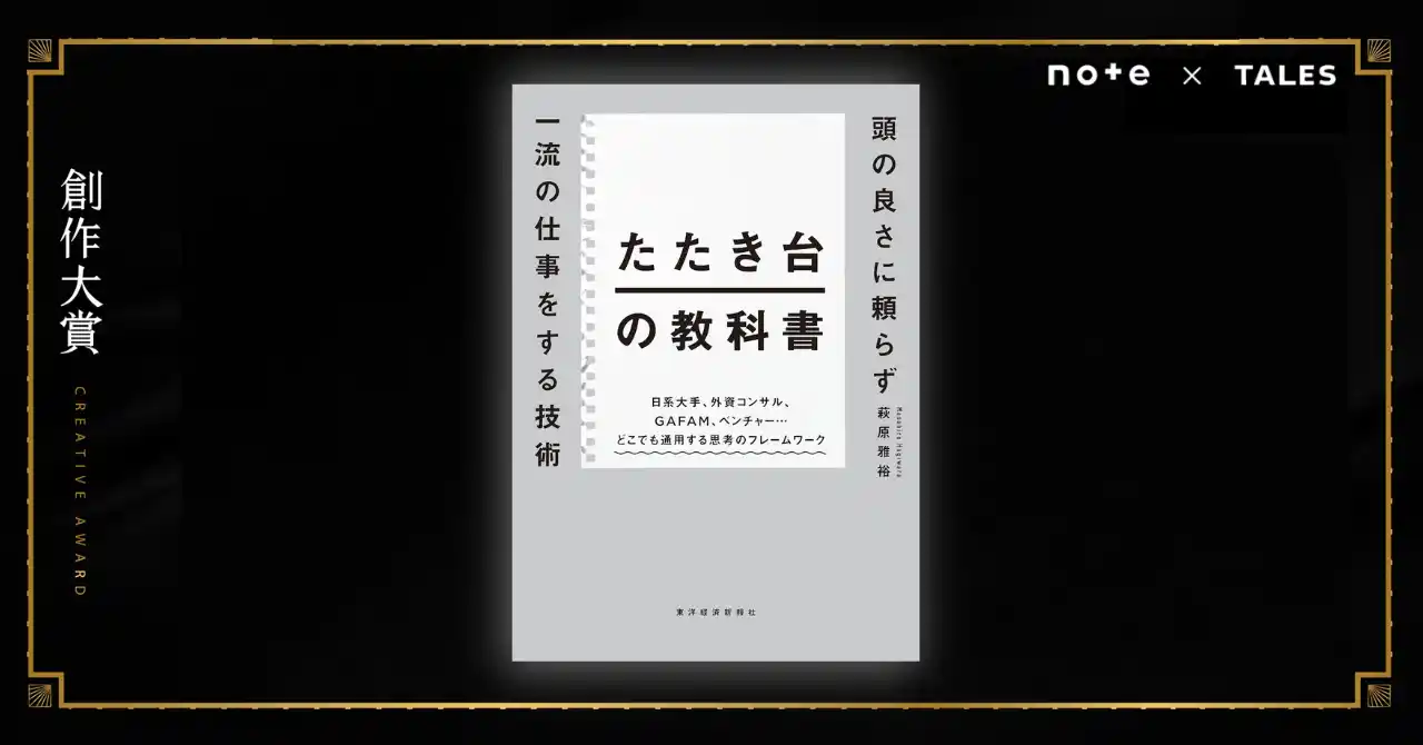 応募総数52,750件の日本最大級の創作コンテスト「創作大賞2024」ビジネス部門で入選を果たした、萩原雅裕さんの2冊目の書籍が誕生。受賞作に改稿を重ね、『たたき台の教科書 : 頭の良さに頼らず一流の仕事をする技術』として、東洋経済新報社より4月15日(水)に発売されます。 |