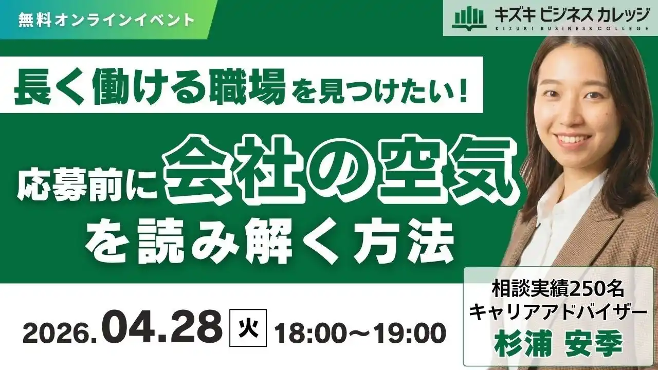 就労移行支援事業所・キズキビジネスカレッジ(KBC)は、2026年4月28日(火)に、ブラック企業やミスマッチを未然に防ぎ、あなたにとっての「安全な職場」を見極めるための無料オンラインセミナーを開催します。 |