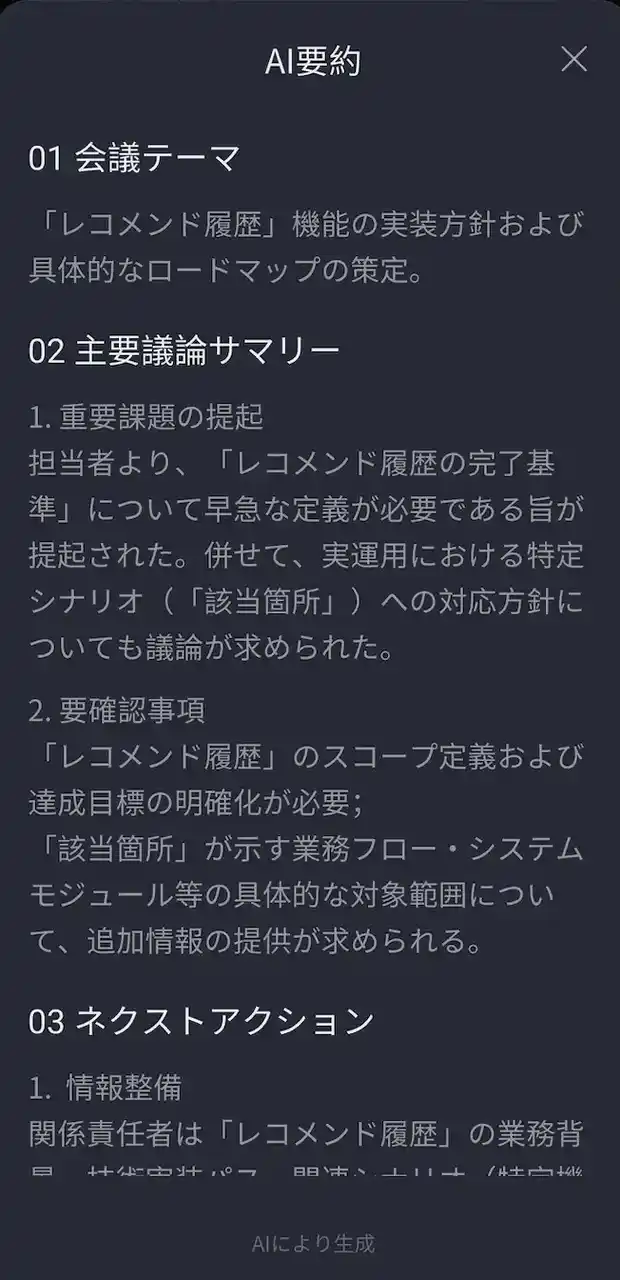 | 1.会話終了後、ワンタップで要点を整理できる「AI要約機能」を新搭載 | |||