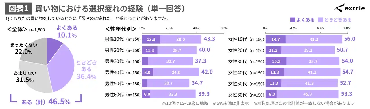 買い物における選択疲れを経験した人は46.5%、女性は全年代で半数超え |