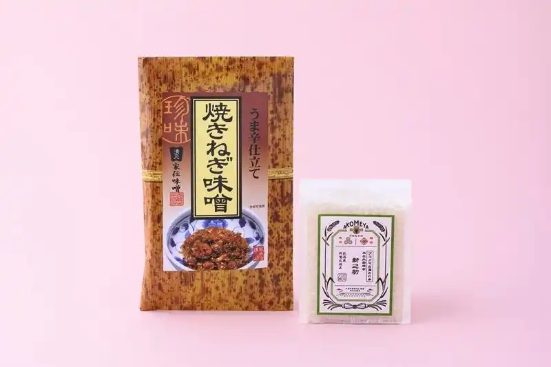 大粒できれいなツヤ、豊潤な甘みとコク、しっかりした粘りと弾力を持ち合わせる新潟県産のブランド米「新之助」。「焼きねぎ味噌」は長野県の熟成信州みそに焼いて旨みを引き出したねぎを漬け込んだ、ごはんが進むおかず味噌です。 |