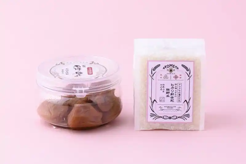 梅の産地・和歌山県紀南地域で、梅の調味液を活用した循環型農業により育てられたブランド米「ヒカリ新世紀 熊野米」。もっちりとした粘りでやわらかく、なめらかなのど越しです。ごはんのお供の定番、和歌山県産の梅を使った「うす塩味梅干」が、お米の美味しさを引き立てます。 |