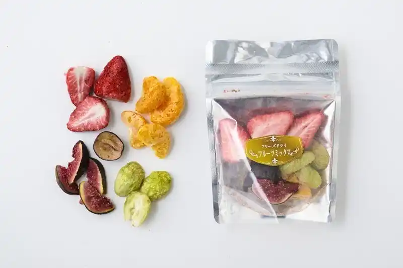 素材に熱を加えないフリーズドライ製法で仕上げたドライフルーツ。軽くサクッとした食感が特長で、いつでも手を汚さずフルーツのおいしさを味わえます。 |