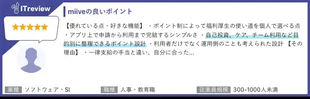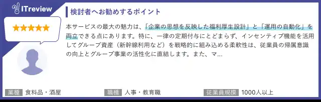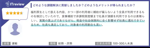 受賞カテゴリ:福利厚生アウトソーシングサービス https://www.itreview.jp/categories/welfare-services |