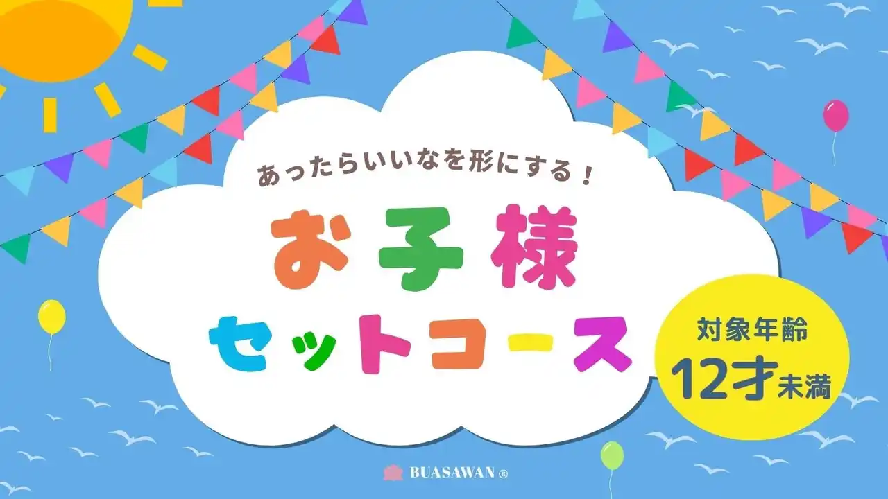 本格タイ古式マッサージ「BUASAWAN」を運営する株式会社蓮の花(本社:東京都中央区、代表取締役:齊藤 美奈子、以下「BUASAWAN」)は、2026年4月15日より全店舗において、12才未満のお子様を対象とした新メニュー『お子様セットコース』の提供を開始いたします。5月5日の「こどもの日」を前に、子どもが親と一緒に本格的なリラクゼーションを体験できる、国内でも珍しい試みとして展開いたします。 |