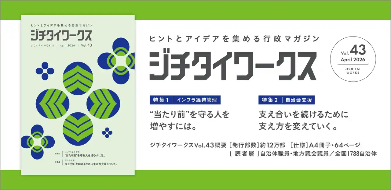 | 官民連携・自治体同士の連携の促進を目的とする媒体発行・プロモーション支援事業等を行う株式会社ジチタイワークス(本社:福岡県福岡市、代表取締役社長:森新平)は、ヒントとアイデアを集める行政マガジン『ジチタイワークス』Vol.43を2026年4月15日に発行いたしましたのでお知らせいたします。 | ||||||||||