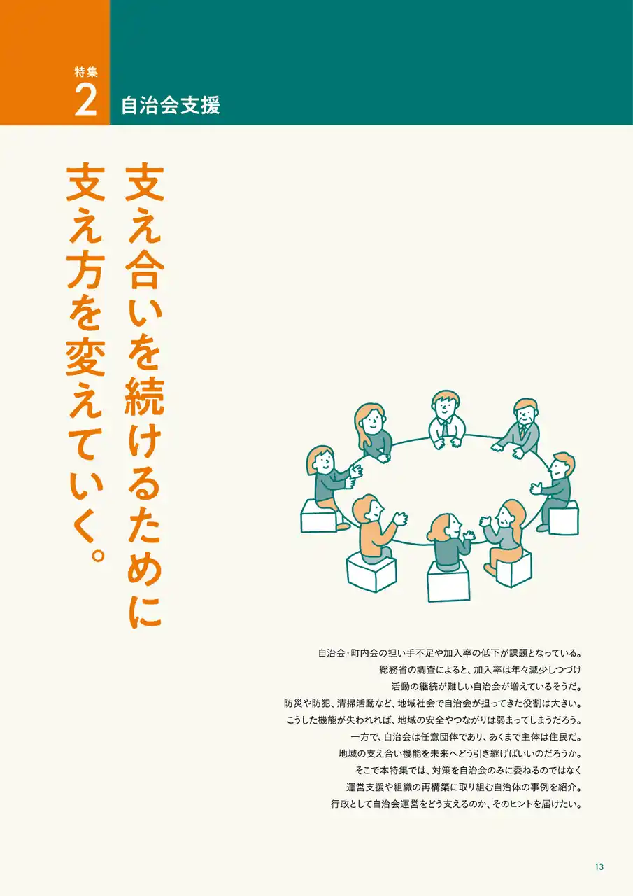 | 今号の特集は、“インフラ維持管理”と“自治会支援” 。 | ||||||||||