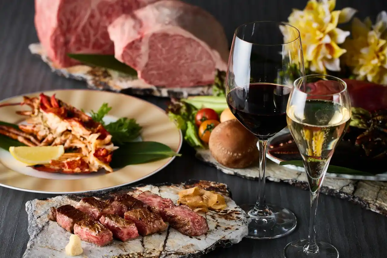 ホテル最上階の鉄板焼〈やまなみ〉で北海道の恵みを贅沢に詰め込んだ特別ディナー。前菜や焼野菜には春から初夏にかけての旬の味覚を使用。濃厚な旨みの「オマール海老」、とろけるような食感の「知床牛」をご堪能いただけます。 |