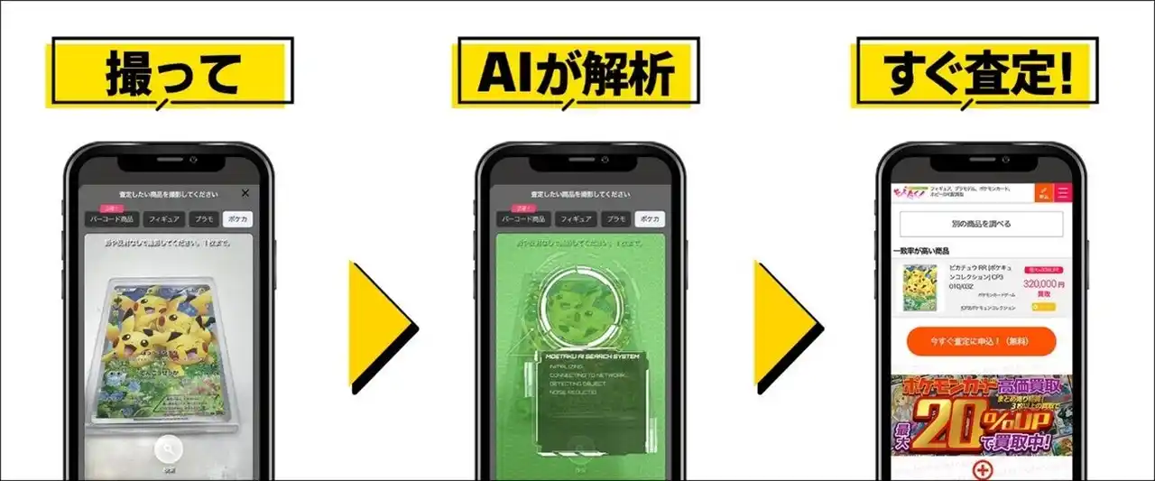 本機能は、市場が急拡大している「ポケモンカード」のほか、「フィギュア」「プラモデル」の主要ホビー3ジャンルへ横断的に対応する、業界初・国内唯一の一般ユーザー向けAI査定サービスです。※当社調べ(2026年4月時点、国内主要買取サービスにおいて) |