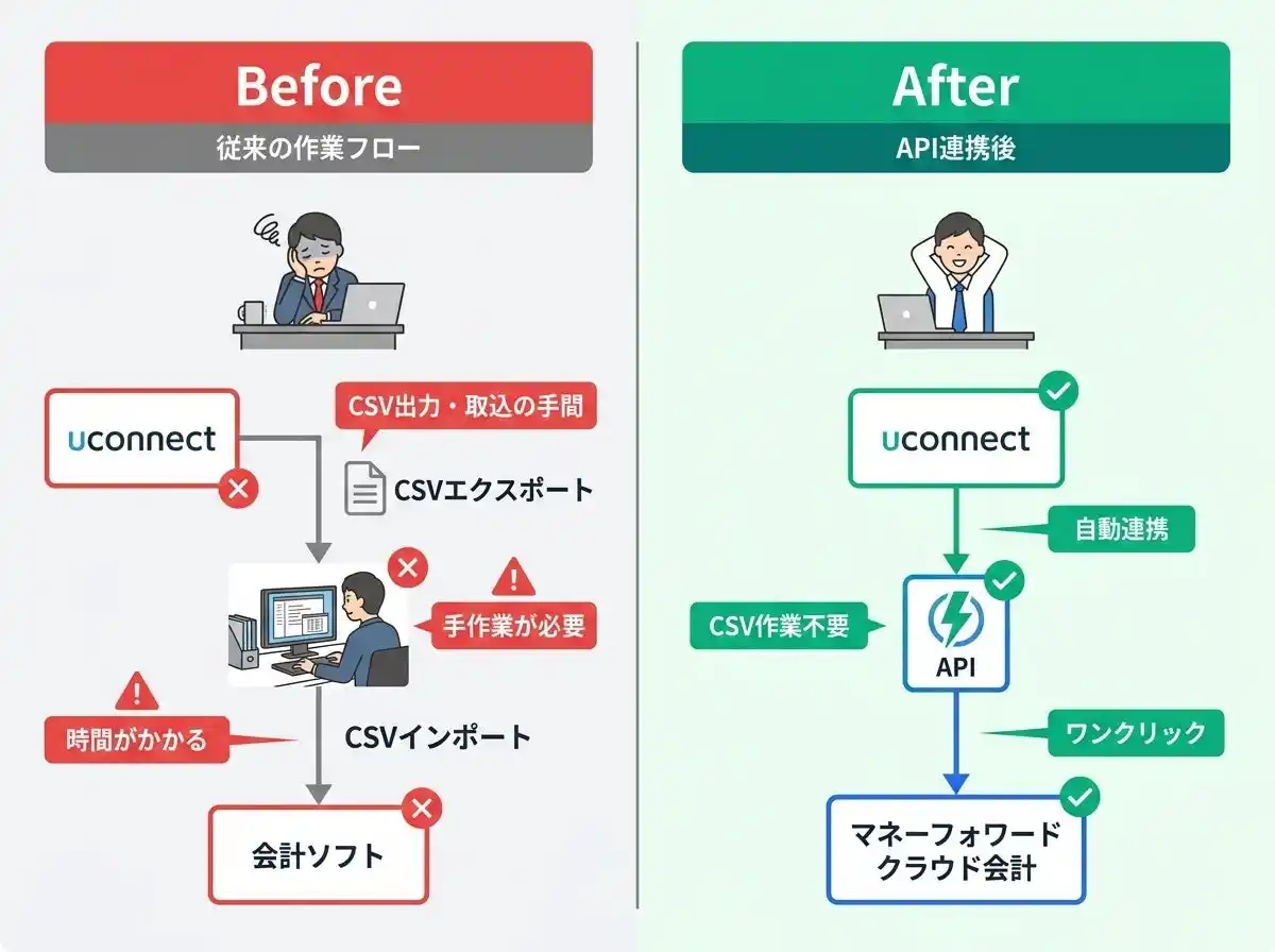 1クリックでuconnectからマネーフォワードクラウド会計へ連携できます! |