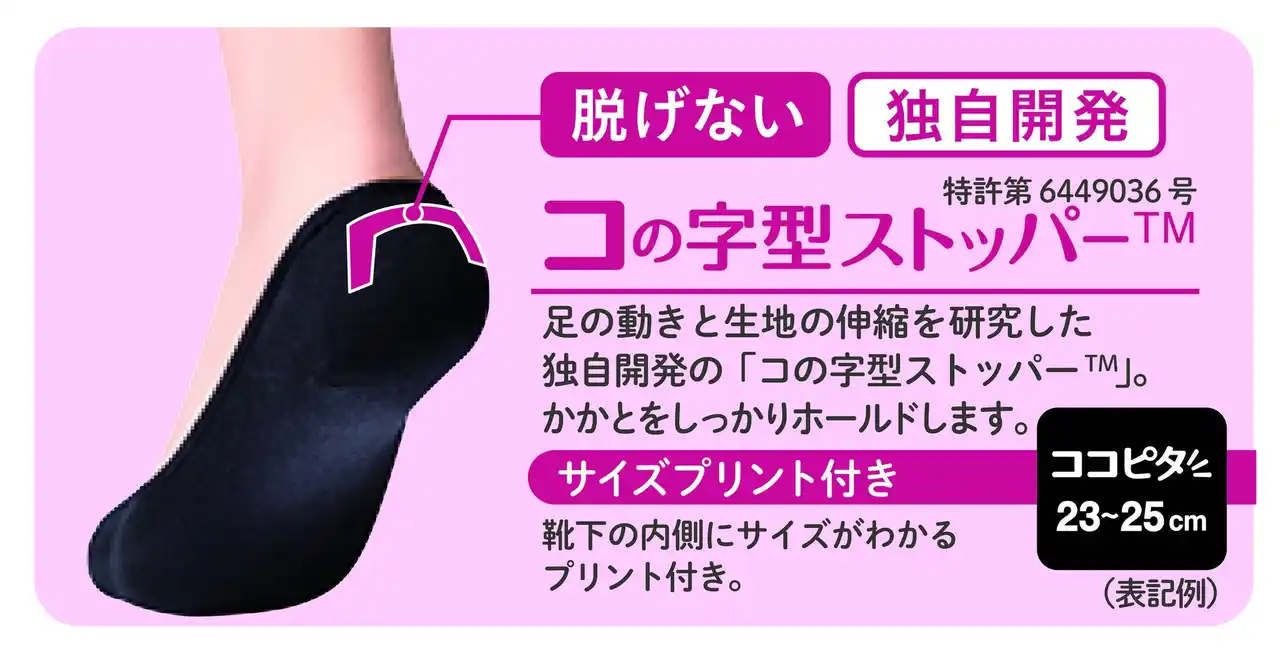 フットカバーユーザーの9割が抱えていた“脱げ”のお悩みを解決すべく開発された「脱げないココピタ」。 |