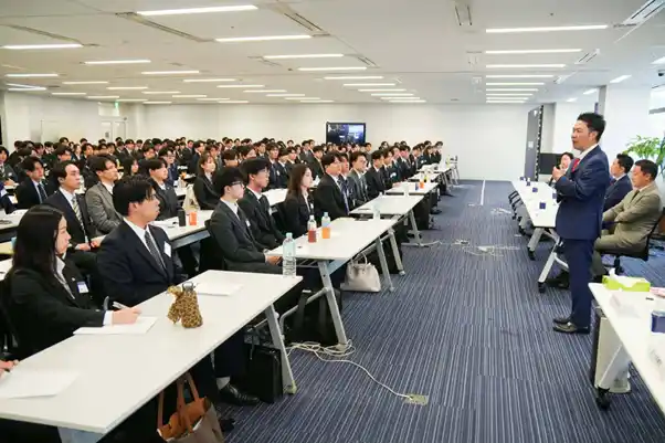 人材事業、WEB事業、海外医療事業などを中心に、M&A事業やスポーツ事業など多角的に事業を展開する株式会社DYM(読み:ディーワイエム、本社:東京都品川区、代表取締役社長:水谷佑毅)は、2026年4月1日、2026年度入社式を執り行いました。当社グループ全体での新卒採用人数は近年増加傾向にあり、本年度は過去最大となる444名(※グループ会社・代表が運営している別法人、および早期入社・秋入社予定者を含む)の新入社員を迎え、事業拡大に伴う組織強化を一層推進しております。 |