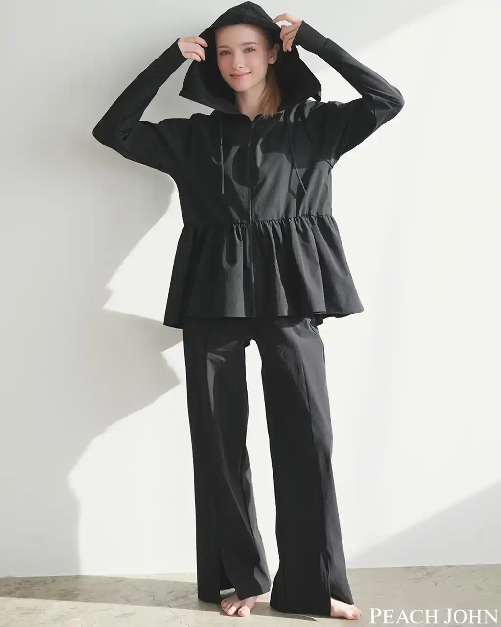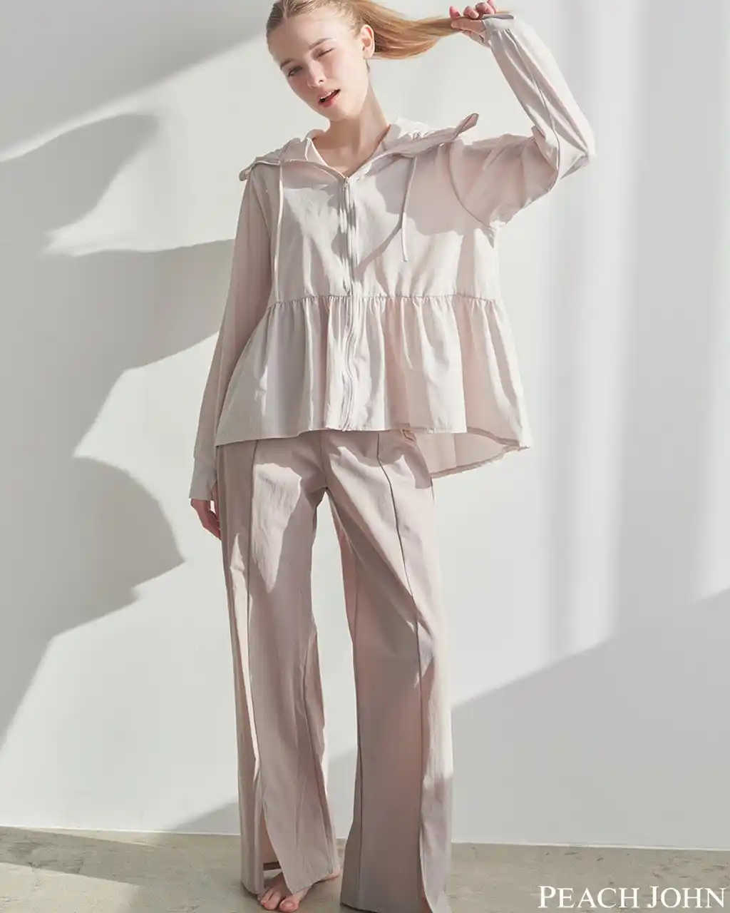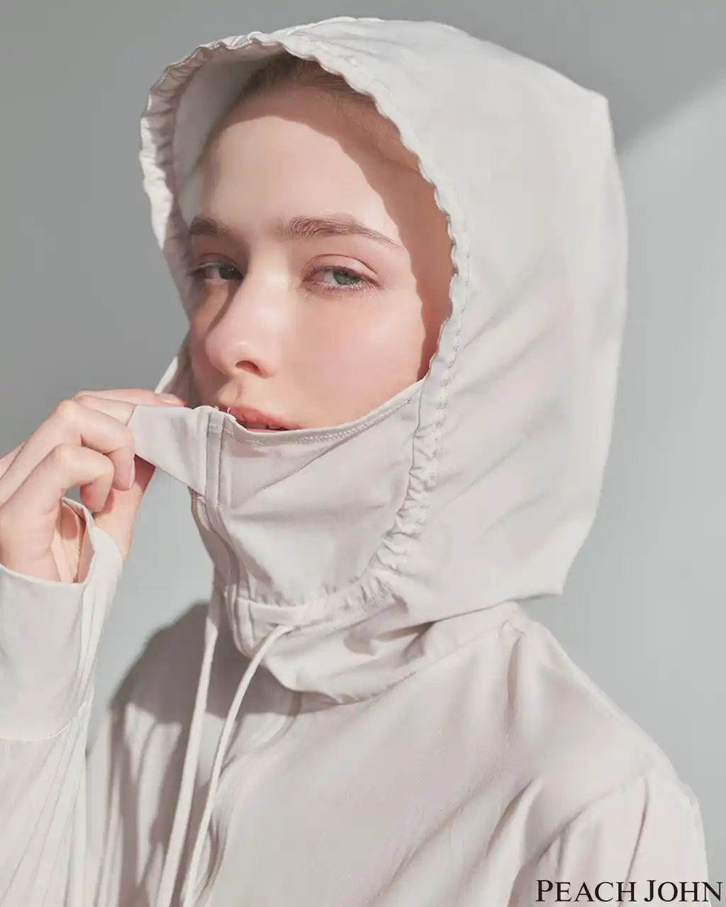パーカー&ロングパンツタイプのパーカーは、ぺプラムデザインでふんわりと広がるシルエット。顔の半分を覆える深めのフードや、手の甲までカバーできる指穴ホールを備えています。さらに、長め丈のパンツとあわせることで夏の日差しを防ぎやすいデザインに仕上げました。カラーはグレージュとブラックの2色展開です。 |