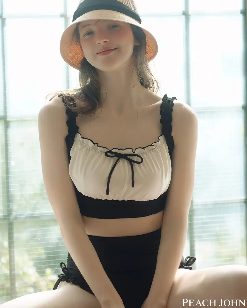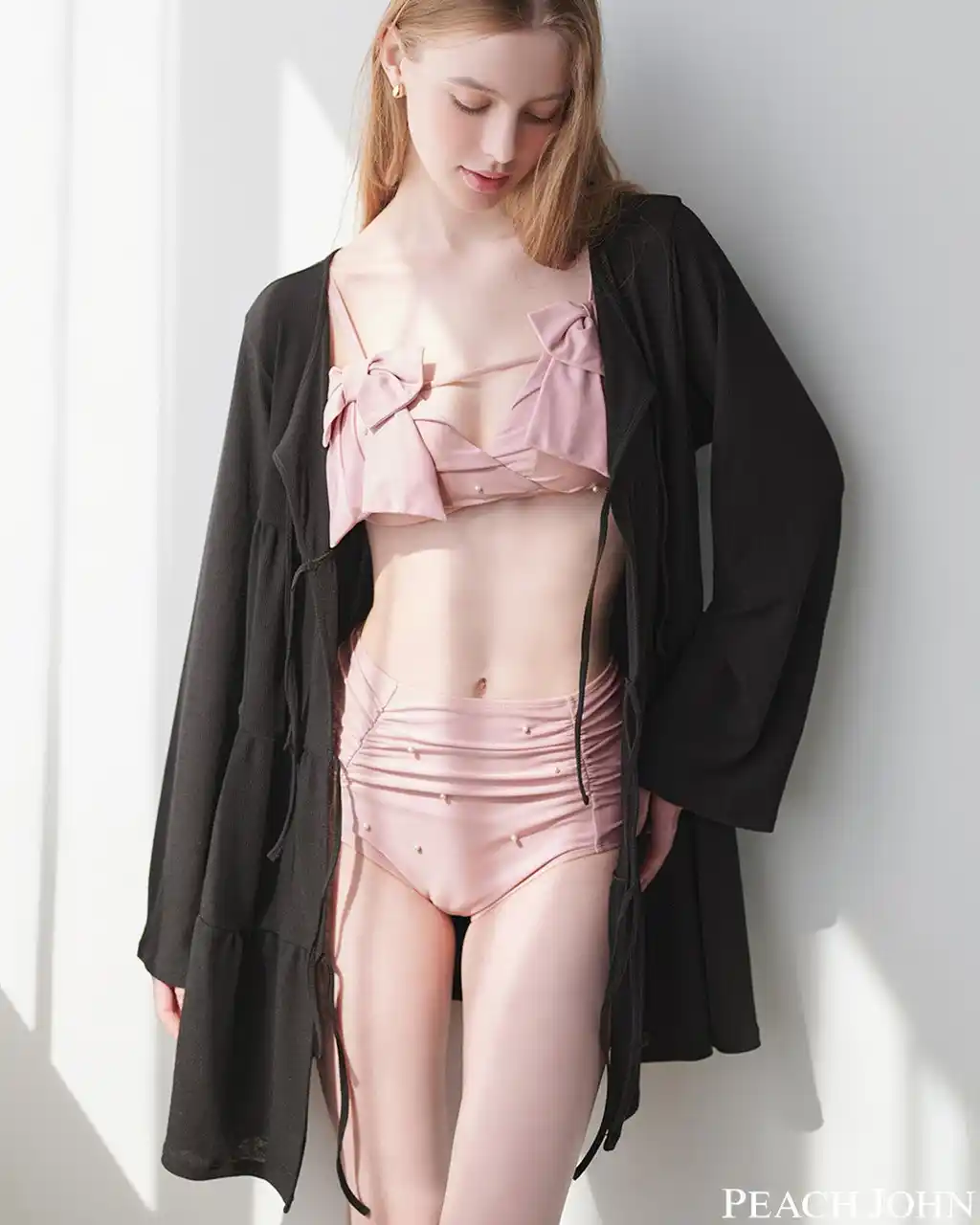 さらに、PEACH JOHNらしいガーリーでフェミニンなデザインで、スタイルアップを叶えるオリジナル水着に加え、これからの季節に嬉しい帽子やアウターライクなラッシュガードも展開。 |