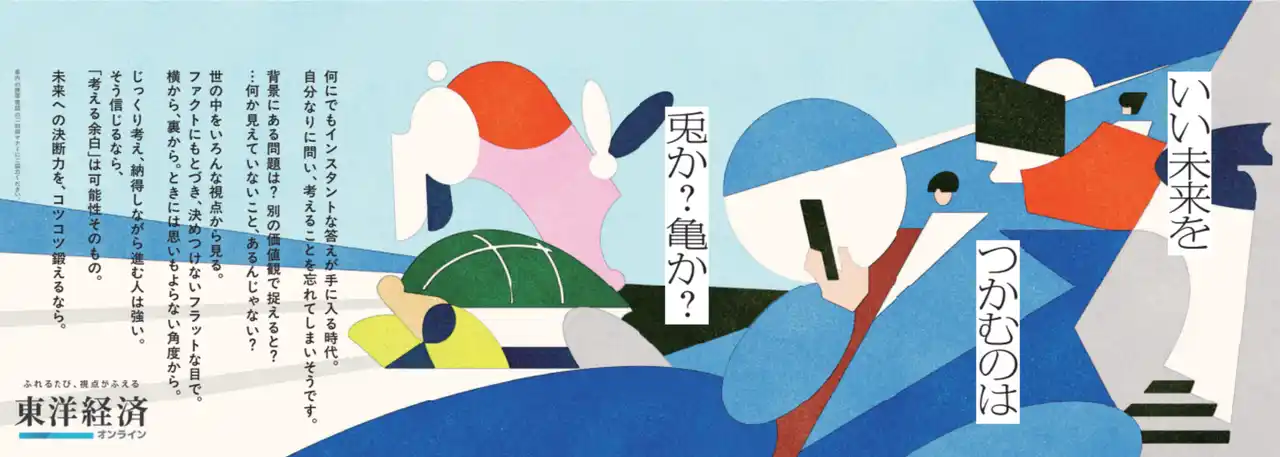 | このブランド再定義を背景に、同日より「いい未来をつかむのは兎か? 亀か?」という問いを起点とした、ブランドキャンペーンを開始いたします。これからの時代に求められる「選択のあり方」を社会に呼びかけ、東洋経済オンラインの新たな価値を発信していきます。 | |||