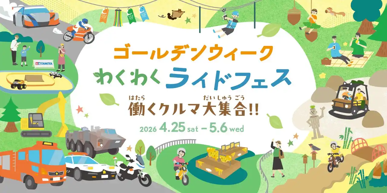 モビリティリゾートもてぎ(栃木県・茂木町)は、2026年4月25日(土)~5月6日(水・振)にゴールデンウィークイベントとして「わくわくライドフェス~働くクルマ大集合~」を開催いたします。 |