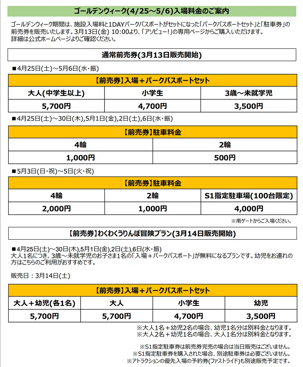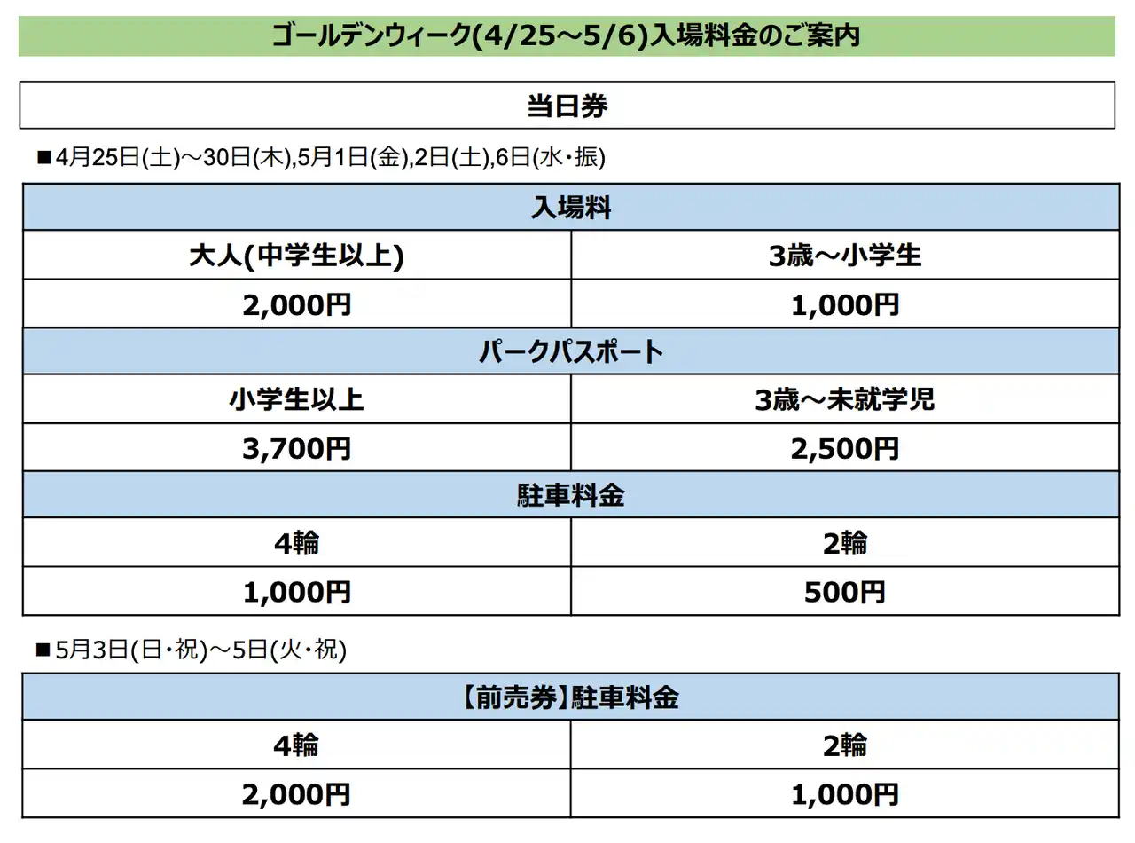 料金 無料 ※パークパスポート対象。 |