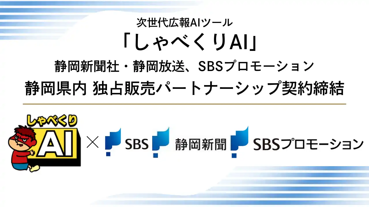 | 本提携により、SBSグループが持つ静岡県内での強固なネットワークとメディア力を活かし、県内の企業、自治体、店舗向けに「しゃべくりAI」の導入支援を展開いたします。 | ||||||||||||||