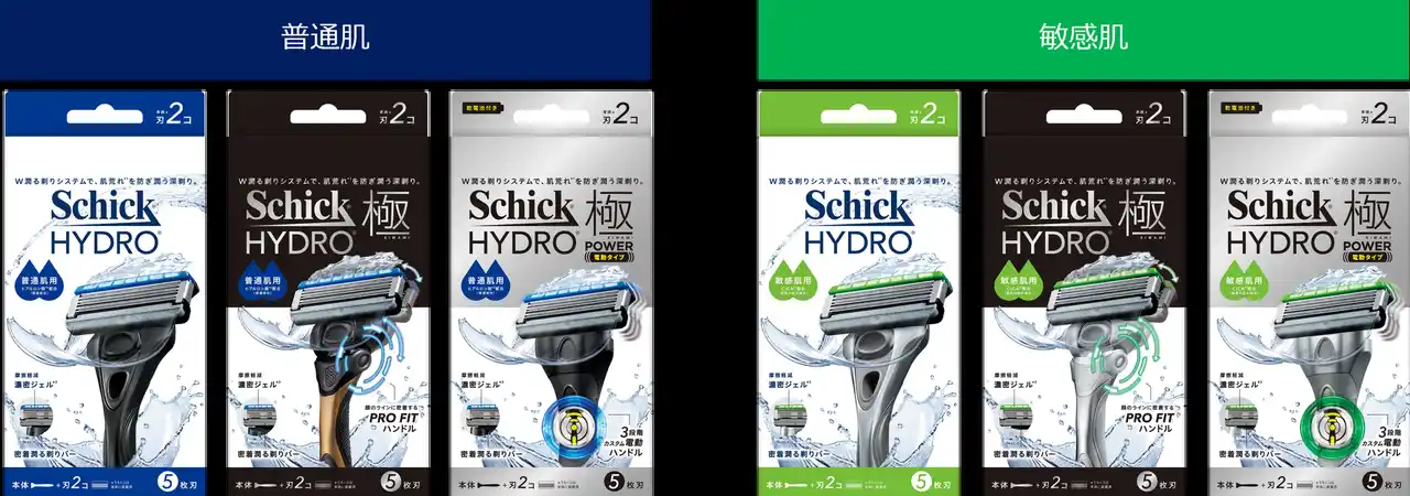 さらに、高機能モデルとして人気の「極(きわみ)」シリーズがHYDRO(ハイドロ)ブランド傘下に加わり、ブランド全体での機能強化と選びやすさを追求。日本カミソリ市場シェアNo.1*2ブランドとして、男性一人ひとりの肌とヒゲに寄り添う新しいシェービング体験を提供します。 |