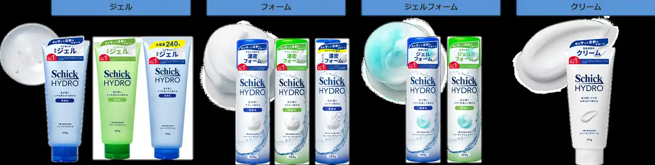 ■シェービング剤:「ジェル」「フォーム」「ジェルフォーム」「クリーム」の全4剤型・9製品 |