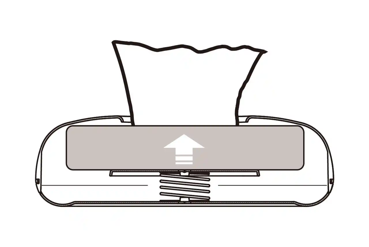 ティッシュが少なくなっても取り出し口の近くにある状態が続くため、最後まで取り出しやすさが変わりません。箱を振ったり中身を寄せる必要もありません。 |