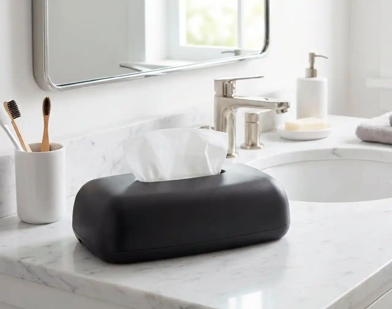 洗顔後やメイク中など、洗面まわりでもティッシュはよく使います。 |