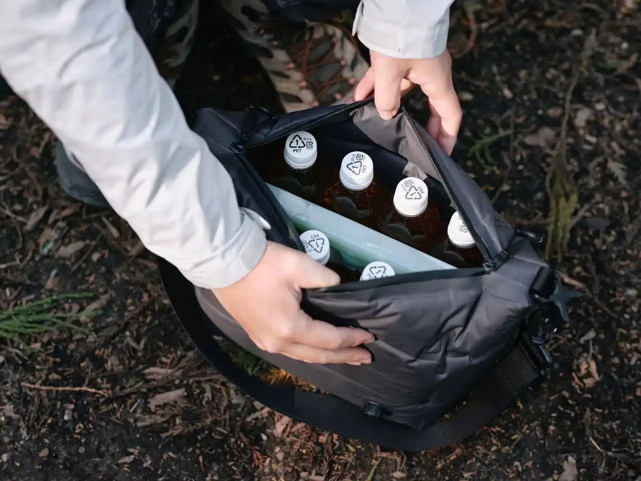 また、500mlペットボトル6本を収納可能なサイズ設計としながら、使用後は空気を抜くことでコンパクトに収納可能。ショルダーと手持ちの2WAY仕様により、持ち運びやすさにも配慮しています。 |