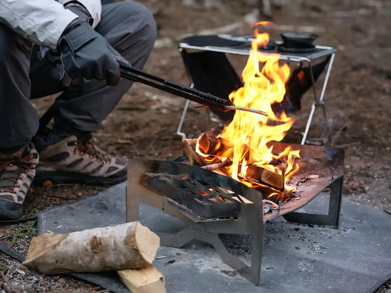 薪を動かし、火力を調整し、状態を整える。 その一連の操作をよりスムーズにし、焚き火体験の質を高める焚き火トングです。 |