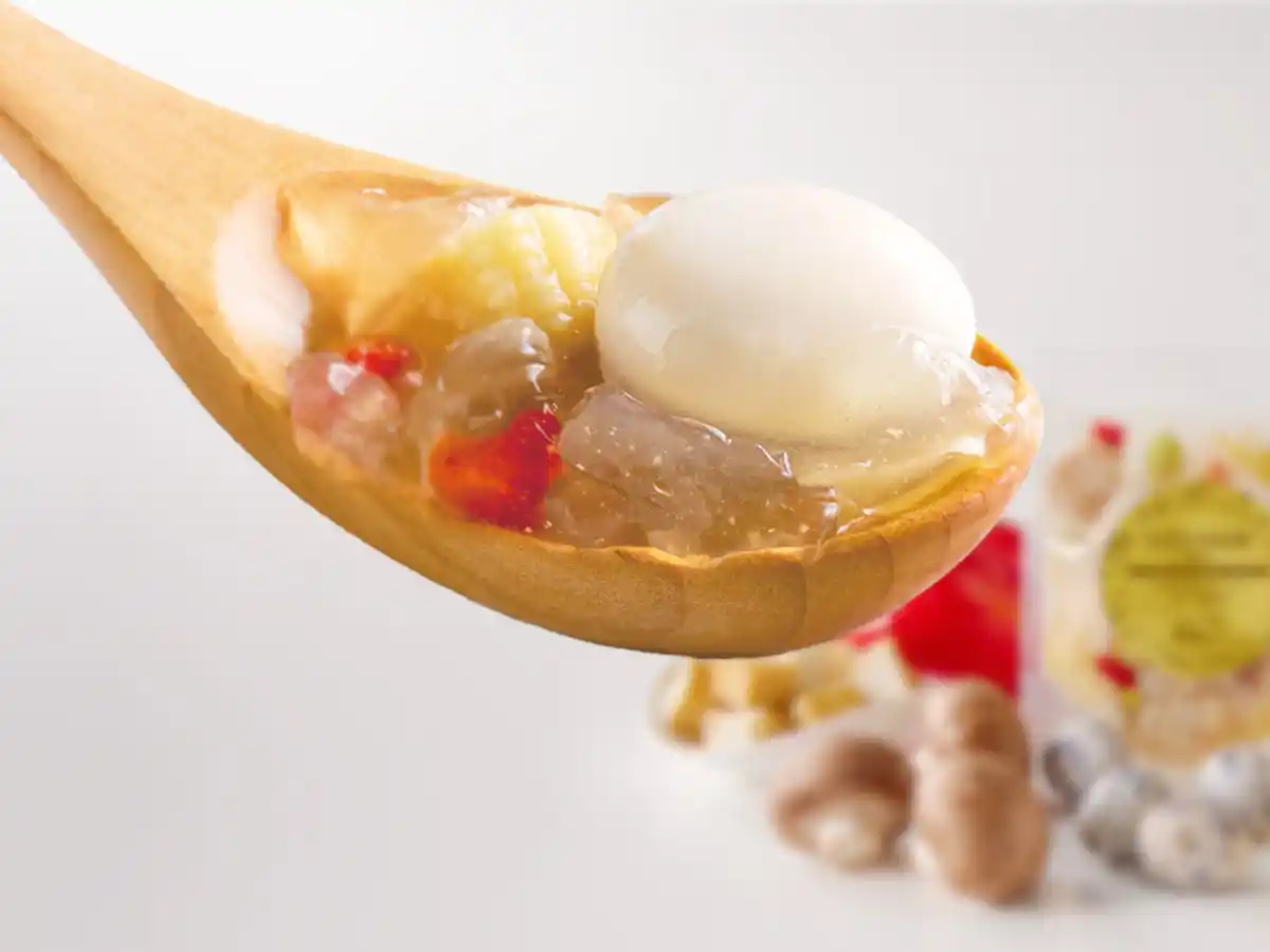 ゆずが香る和風だし味のジュレに、国産うずら卵4個、ヤングコーン、 |