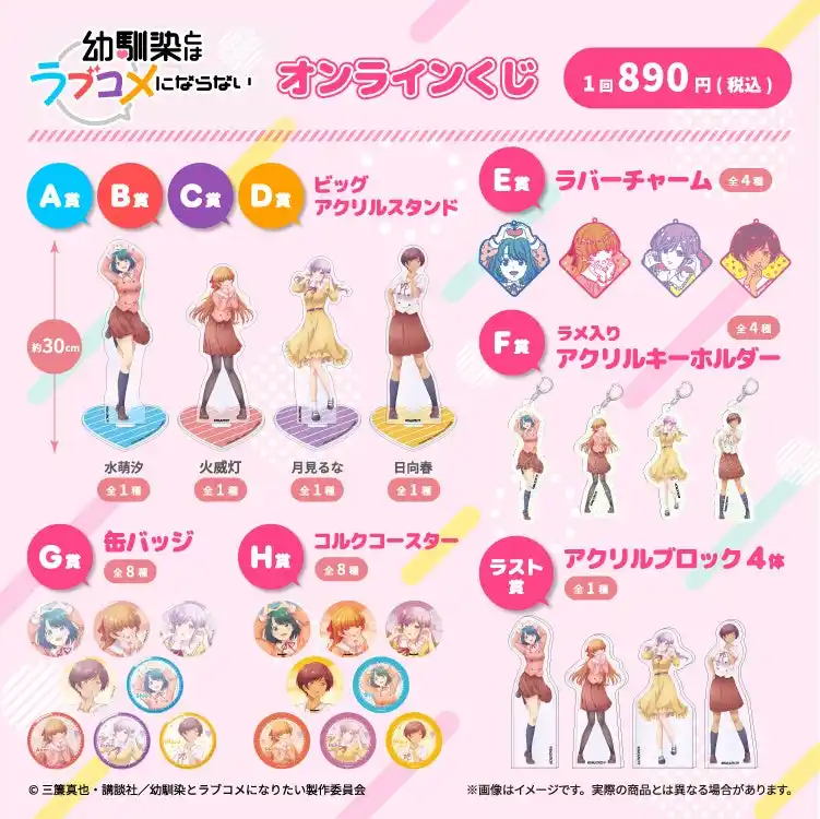 TVアニメ『幼馴染とはラブコメにならない』 から汐・灯・るな・春の4人が、オンラインくじになって登場!ファミマオンライン限定のグッズをぜひお楽しみください。 |