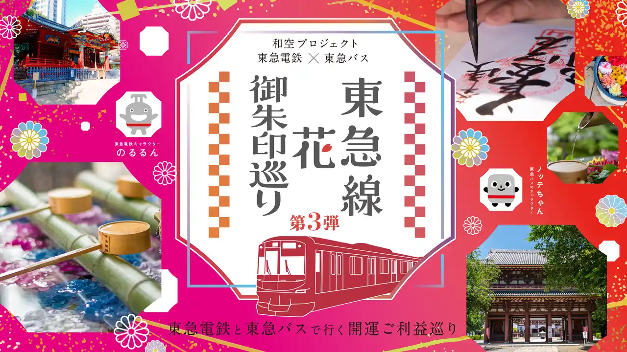 | 寺社文化の継承や地域振興につながる企画・運営を行う株式会社和空プロジェクト(本社:大阪府大阪市、代表取締役社長:平田益男)と、東急電鉄株式会社(以下、東急電鉄)は、東急バス株式会社(以下、東急バス)の後援・協力のもと、東急線・東急バス沿線にある55寺社を巡る「東急線花御朱印巡り第3弾」(以下、本イベント)を2026年4月25日(土)から2027年3月31日(水)まで開催します。 | |||||||||||||||||||