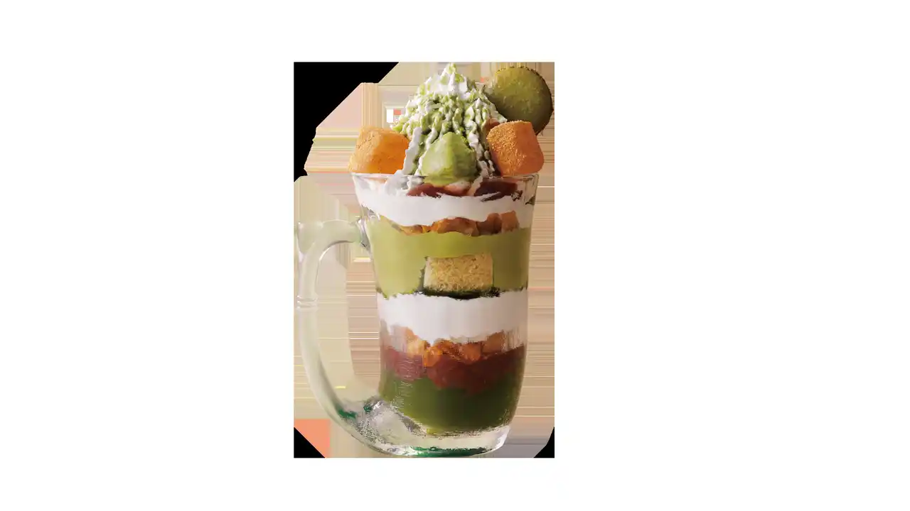 たっぷりサイズの「ジョッキパフェ(抹茶)」では、「抹茶パフェ」のトッピングに加え、抹茶アイスやシフォンケーキなどを大きなジョッキに詰め合わせた満足感のある一品です。今年は、トッピングの焼き菓子が抹茶味に。さらに、わらび餅とゆであずきを昨年から増量しました。 |