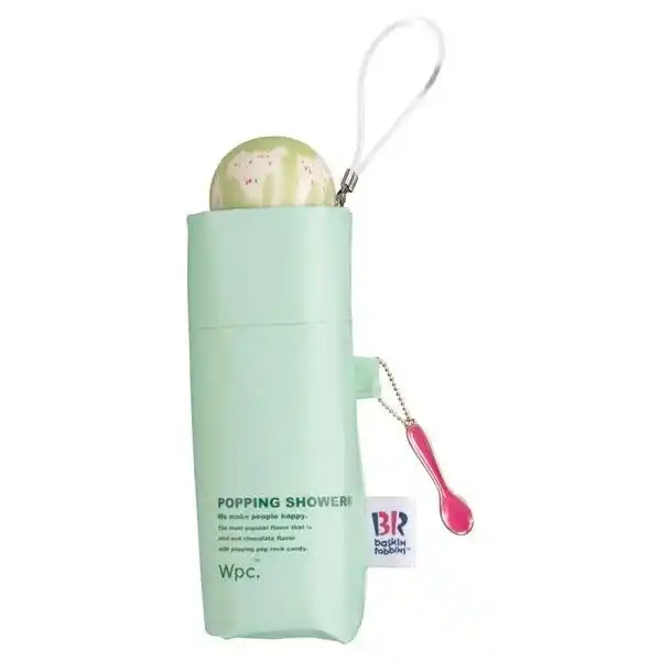 持ち手やワンポイントの刺繍にサーティワン アイスクリームの人気フレーバーを表現した折りたたみ傘。スプーン型チャーム付き。 |