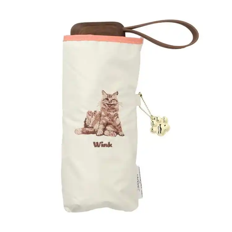 猫写真家・沖 昌之さんが撮影した猫たちを、傘本体と収納袋に刺繍している折りたたみ傘。 |