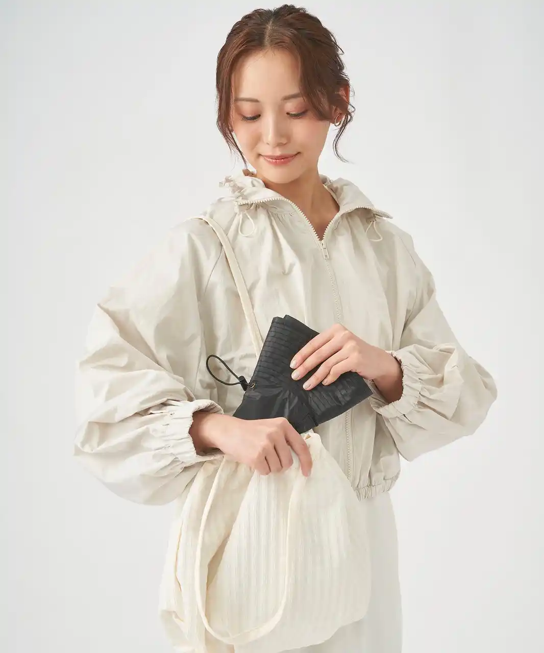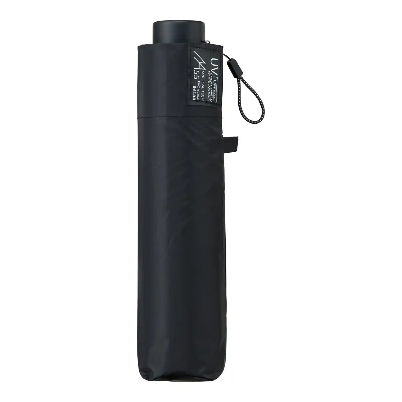 収納時に約11.5cmになる折りたたみ傘。巻いてまとめるロールアップ式の収納袋つき。 |