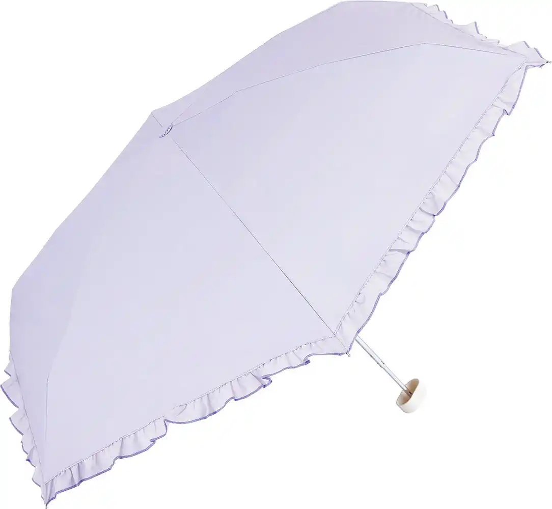 傘とポーチにフリルをあしらった折りたたみ傘。傘の出し入れがしやすい収納ポーチ付き。 |