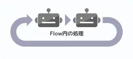 『Flow』は、クラウドBOTで作成した複数のBOTを連結し、一つのBOTとして実行・管理できる機能です。複雑なプログラミングは一切不要で、ノーコードで高度なワークフローを構築できます。 |