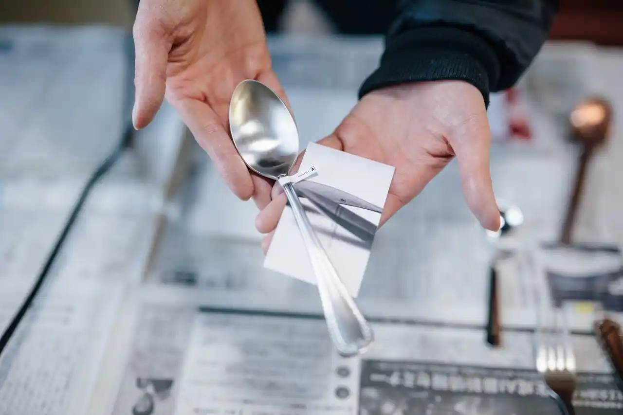 | こうした背景を受け、明治44年に日本で初めてカトラリー製造に挑んだ燕物産と 、地域の精神性を重んじるLAMBDA・JAPANがタッグを組みました。自らの手で磨き、自らの舌で確かめるプロセスを通じて、参加者のカトラリーや製品に対する価値観が変わる機会を設計します。 | |||