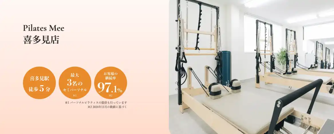 喜多見駅周辺にはこれまで、インストラクターが一人ひとりの動きを確認しながら指導するセミパーソナル形式のマシンピラティススタジオがありませんでした。Pilates Mee 喜多見店は、1名のインストラクターにつき最大3名の少人数制で、パーソナルに近い指導を受けられるセミパーソナルピラティスを同エリアで初めて提供します。「ピラティスに興味はあるが、近くにスタジオがなかった」という地域の方にとって、自宅の生活圏内で本格的なマシンピラティスを始められる環境が整いました。 |