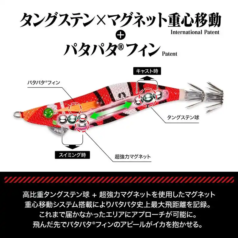 潮流をしっかり捉えて強力な波動でイカを寄せる「パタパタ(R)フィンワイド」と、