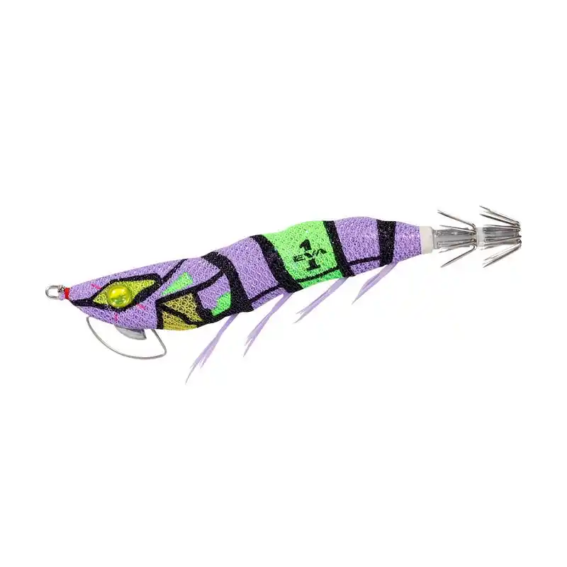 エヴァンゲリオン初号機をモチーフにした特別カラーのエギ。 |