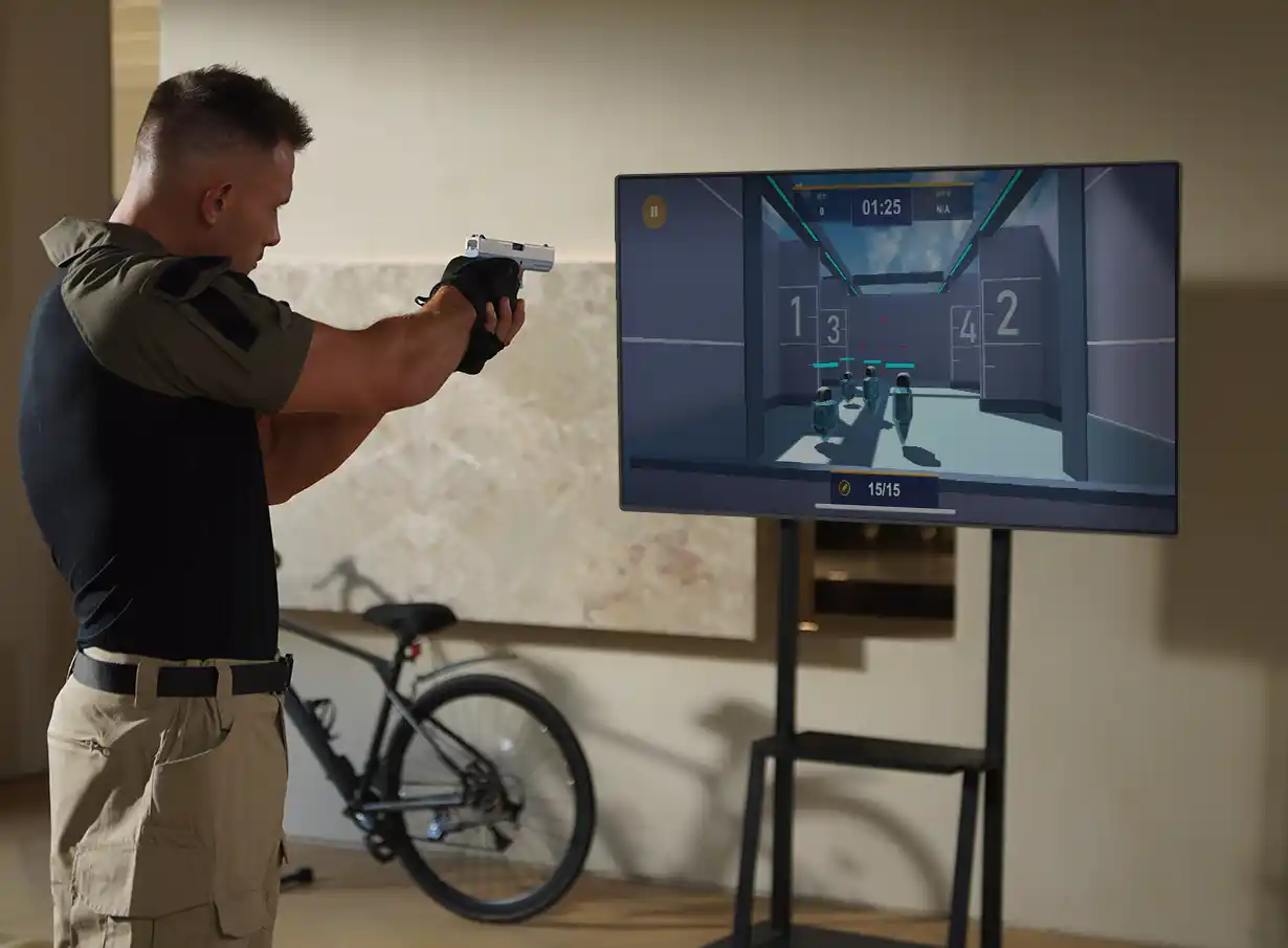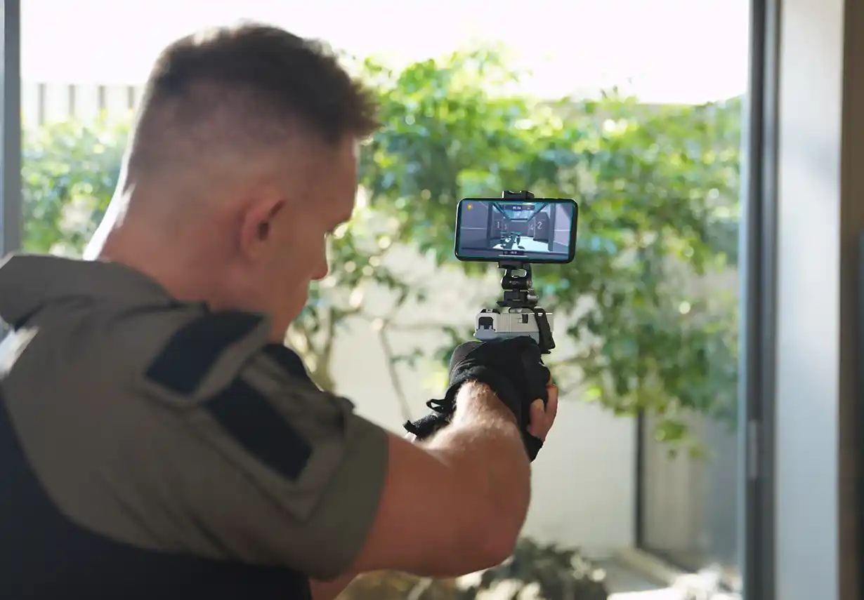 当社ではBB弾を飛ばさず、リビングで本格的なシューティングゲームを可能にする「スマホシューティングゲーム」を展開しています。 |