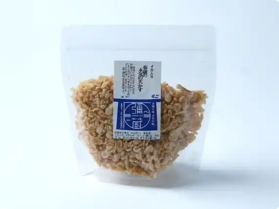 一度食べたらとりこになる、老舗海産物問屋が作った本気の天かす。イカと魚のすり身を使っているため、一般的な天かすと比べて、風味の豊かさが圧倒的です。うどんやお好み焼き、野菜炒めにかけたり、冷奴やサラダにかけたり、そのままおやつにしたりと、使いやすい一品です。 |