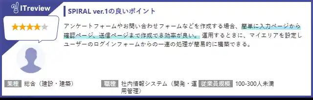 「SPIRAL ver.1」のレビューページ URL: https://www.itreview.jp/products/spiral/reviews |