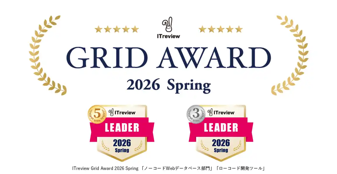 デジタルで未来最適をリードするスパイラル株式会社(東京都港区、代表取締役グループCEO 佐谷 宣昭)は、「ITreview Grid Award 2026 Spring」にて、主力製品のローコード開発プラットフォーム「SPIRAL ver.1」が、『ローコード開発ツール』『ノーコードWebデータベース』の2部門にて最高位の「LEADER」を受賞しましたので、お知らせいたします。『ローコード開発ツール』では19期連続、『ノーコードWebデータベース』では20期連続受賞となります。