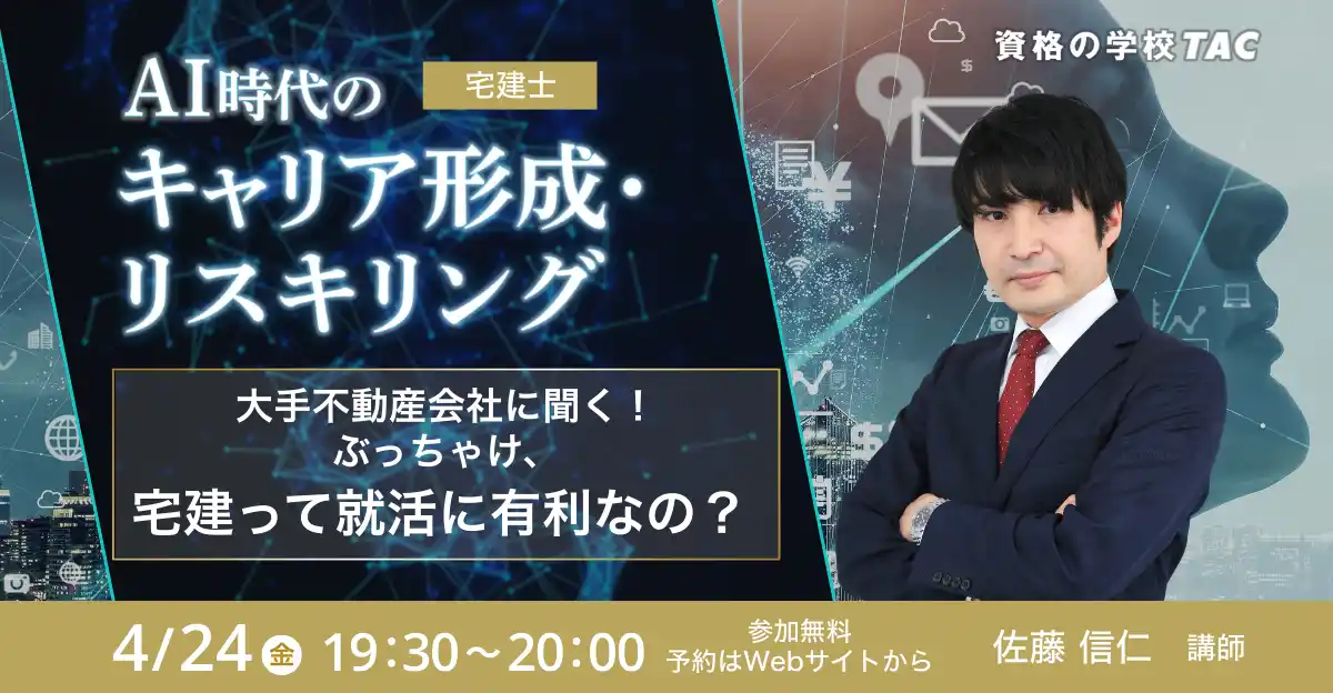 本イベントは4/21(火)~4/24(金)に資格の学校TAC12講座が合同で開催する「AI時代のキャリア形成・リスキリング」セミナーの最終日におこないます。 |