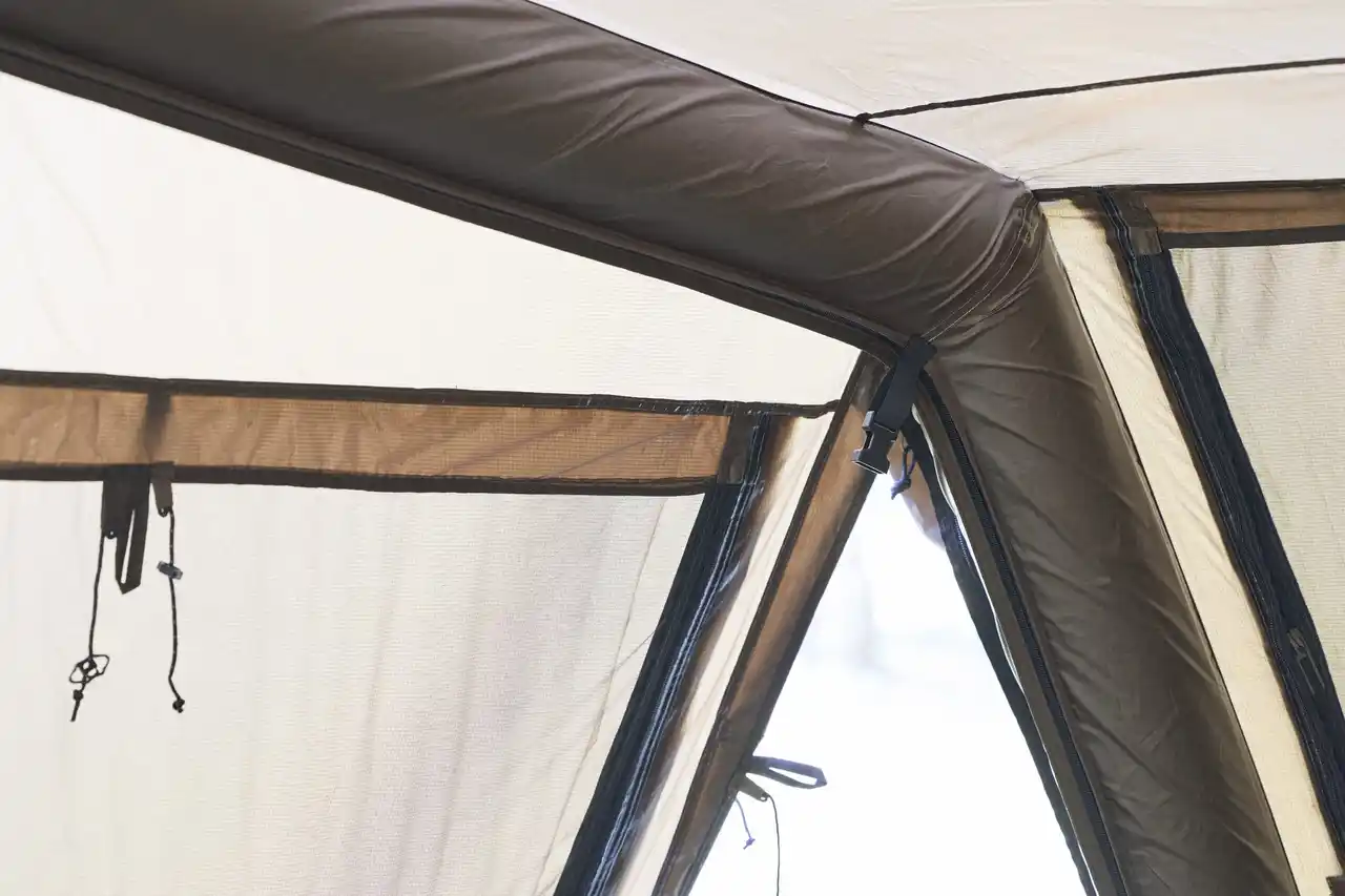 AIR VISTAのメインフレームには、内径12cmの一体成型TPUエアポールを採用しています。 高い安定性と耐久性を備えており、テントをしっかり支える構造です。 |