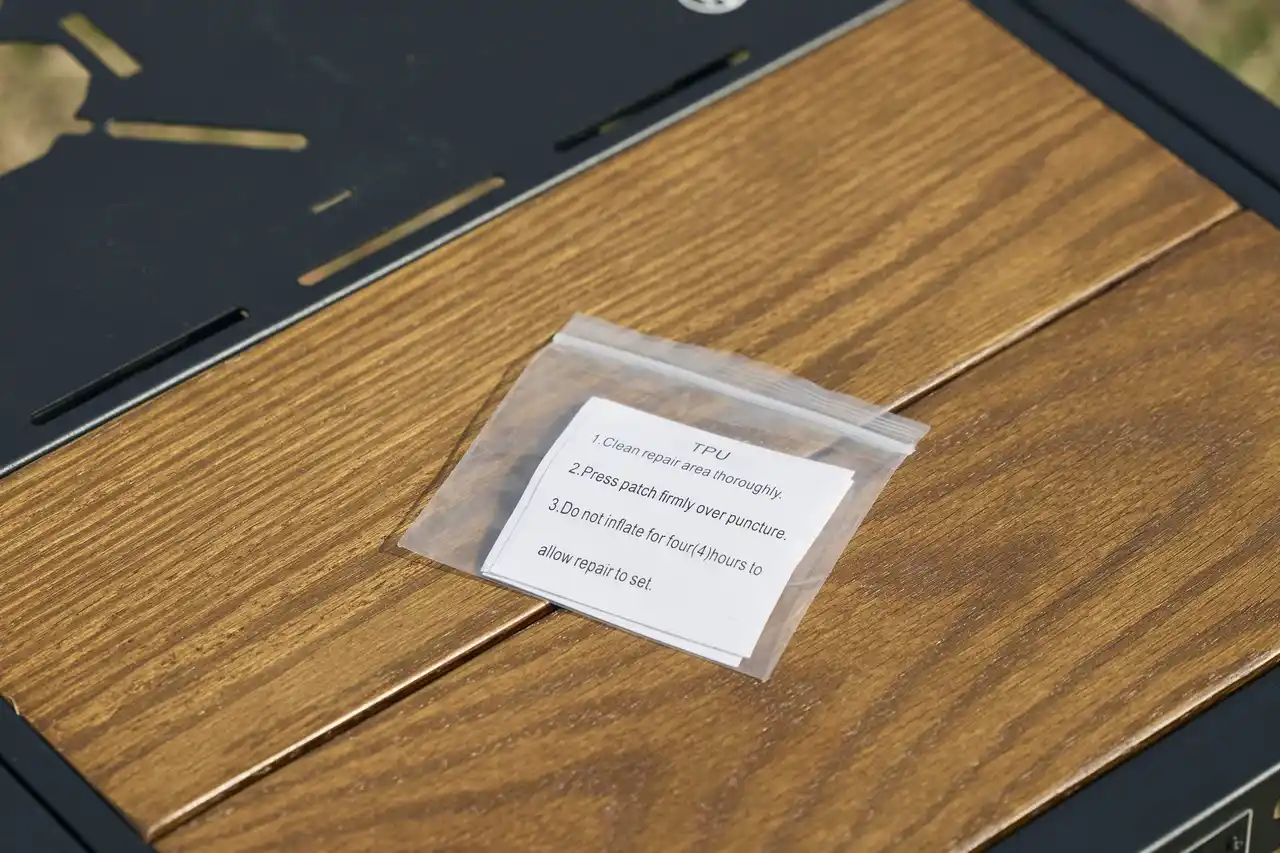 万一に備えて、TPU修復用のリペアキットを付属しています。 エアテントをより安心してお使いいただけるよう、メンテナンス面にも配慮いたしました。 |