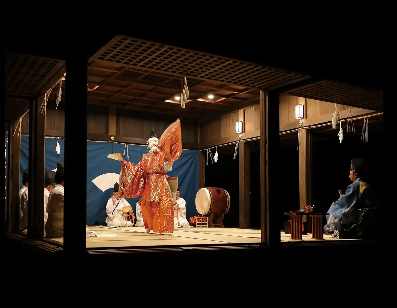 19:00~20:30 佐陀神能 鑑賞 灯りに浮かび上がる佐陀神能の幽玄な舞が、神話の世界へと誘います。 |